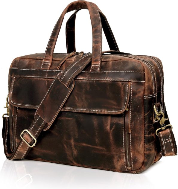 - Handcrafted by Artisans – Made with thick full grain Italian leather, outfitted with robust hardware, and premium YKK zippers – Plan to have this for years to come. Sturdy top handle men’s briefcase, adjustable nice shoulder straps (appr. 85 ~ 140 cm).