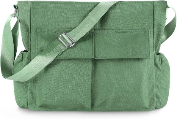 Canvas Messenger Bag Crossbody Shoulder Bag for Men Women Vintage Tote Laptop Bag Large Hobo Bag with Multiple Pockets
