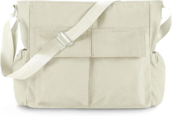Canvas Messenger Bag Crossbody Shoulder Bag for Men Women Vintage Tote Laptop Bag Large Hobo Bag with Multiple Pockets