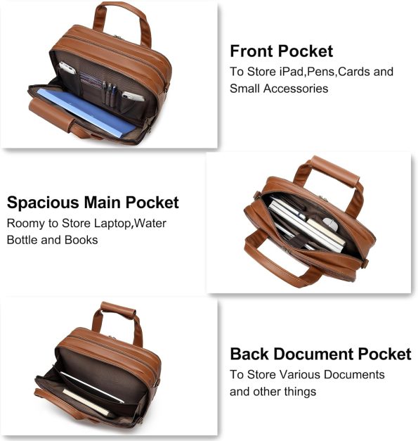 - 【TROLLEY COMPATIBLE】The compatible belt at the back of mens leather laptop briefcase can be easily fit into luggage trolley, freeing your hands and bringing you comfort and convenience for business trips and travel.