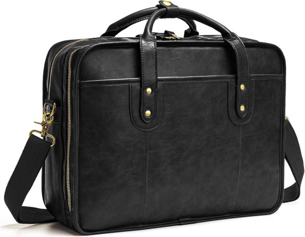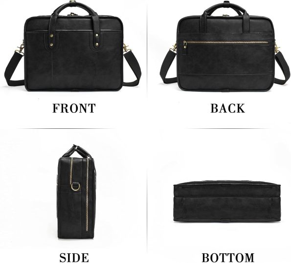 • Multi-Functional Compartments : This vintage briefcases for men is well-designed and Huge-roomy, it has enough capacity with 4 compartments to hold daily essentials. 1*Main compartment can hold a 15.6 inch laptop and some books, 1*document organizer compartment, 1* front compartment with buttons pocket and 1*back zipper pocket can hold your iPhone, iPad, passport, file, credit cards, ID card , pen, wallet, keys and other all your items. Multi-layered space design, convenient and practical.