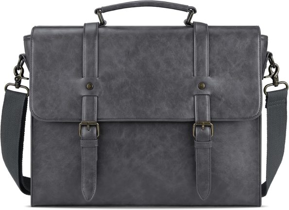 Leather Men’s Messenger Bag Vintage 15.6 Inch Waterproof Leather Laptop Briefcase Satchel Shoulder Bag Computer Laptop Bag Grey