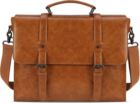 Men’s Messenger Bag Vintage 15.6 Inch Waterproof Leather Laptop Briefcase Large Satchel Shoulder Bag Retro Office College Computer Bag, Brown