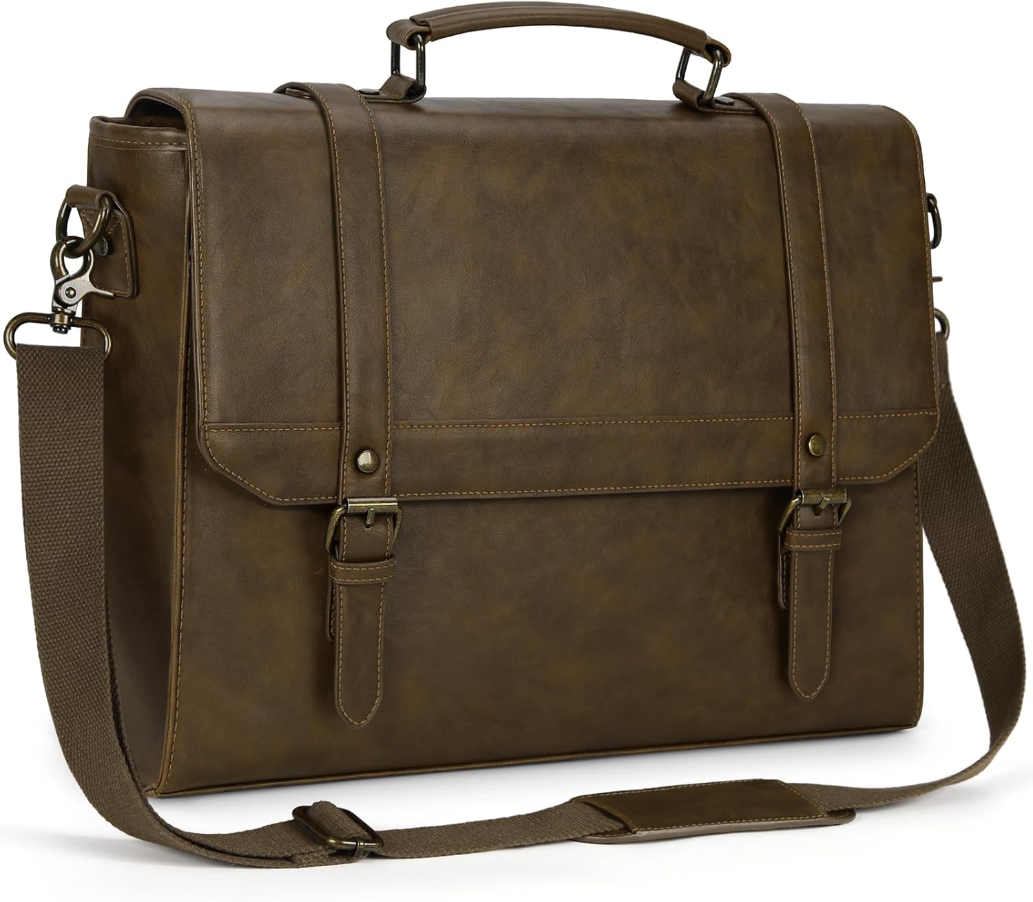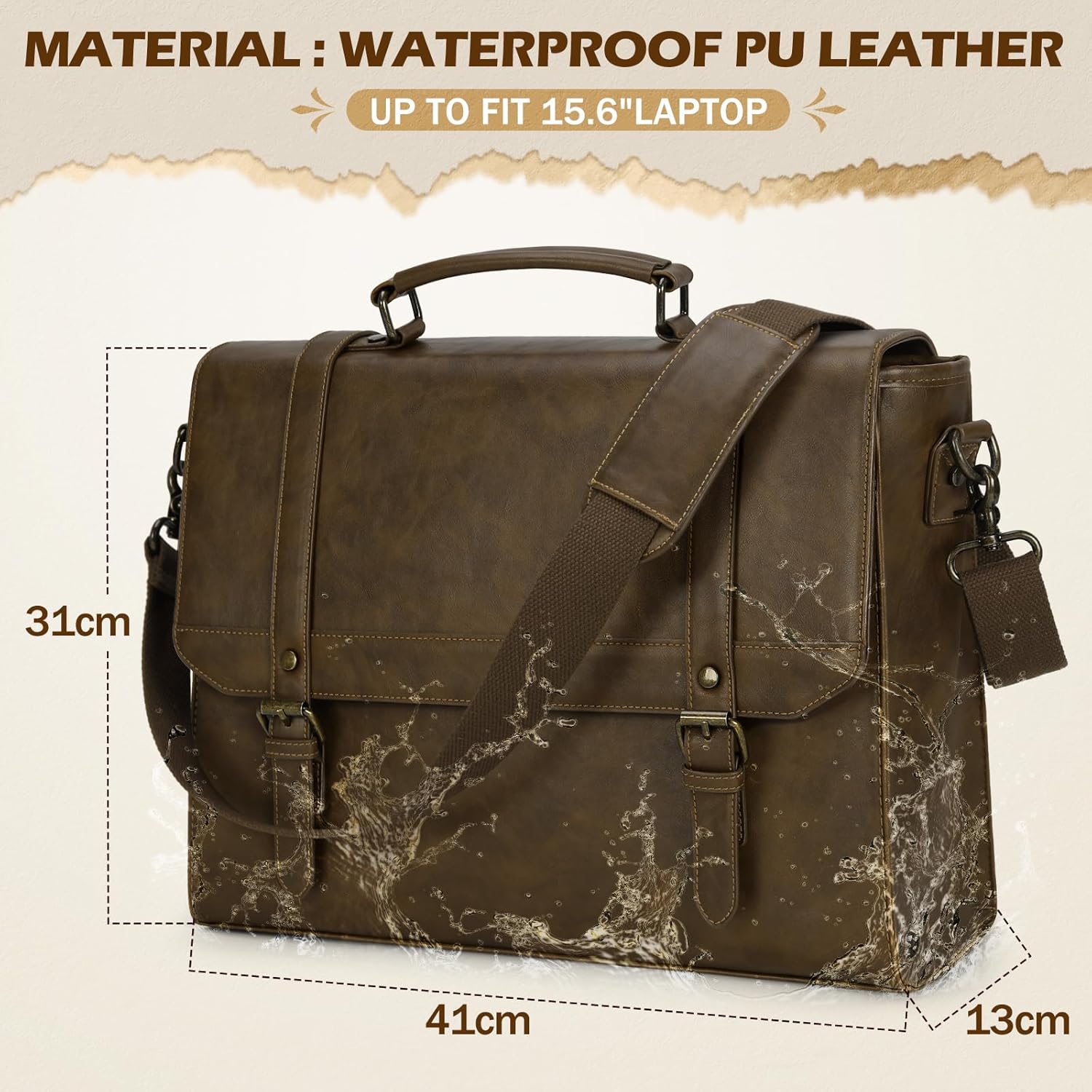 Messenger Bag for Men 15.6 inch Vintage Leather Waterproof Laptop Briefcase for Men Large Computer Laptop Bag Leather Satchel Bag Retro Shoulder Bag for Office Business Travel College, Khaki